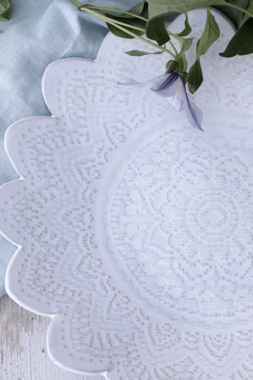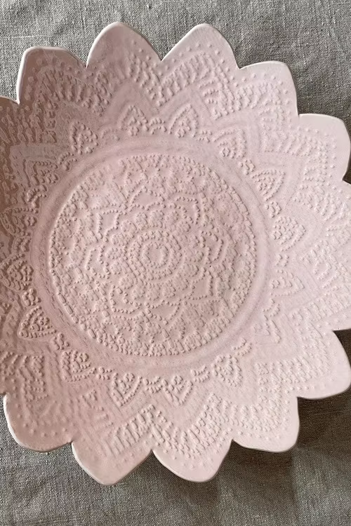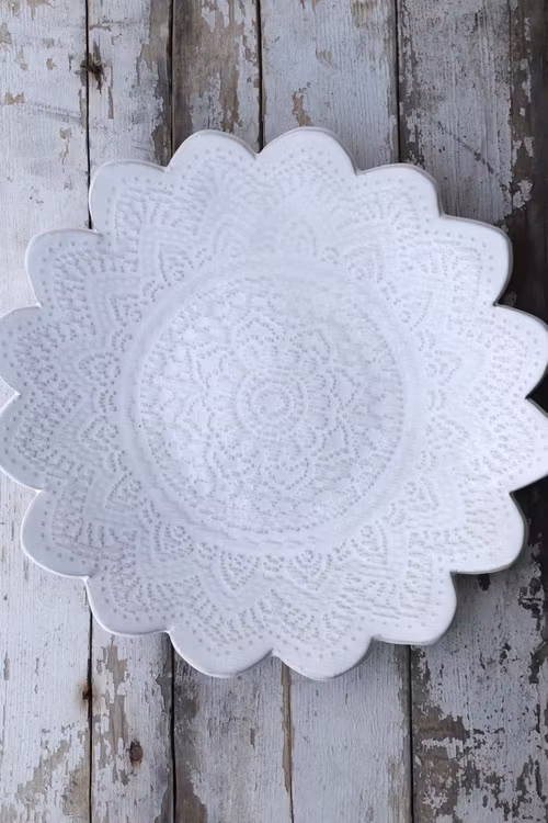 Detta fatet är min favorit. Jag tycker det är så vackert med sitt mönster och vågiga kant. Det har en bra storlek för att användas till sallader, pastarätter eller som fruktfat. Självklart kan det även stå framme utan något i och bara vara vackert.