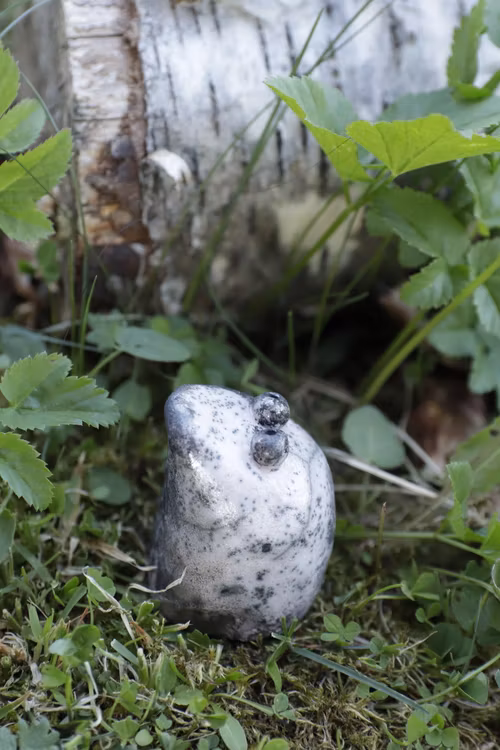 Odd är ljusrosa/grå och ca 6 cm hög. Han är tillverkad i rakuteknik vilket gör honom helt unik.